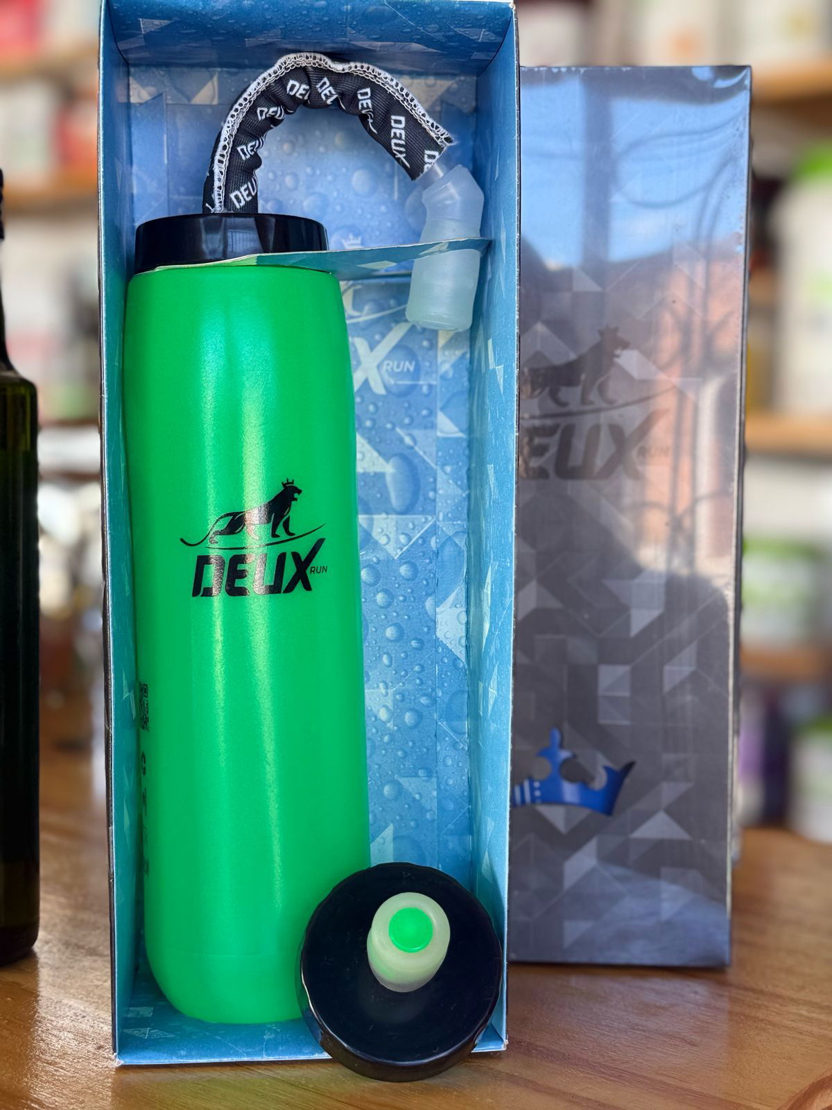 La botella flexible DEUX es cómoda, resistente, elástica, segura, fiable y se adapta a cualquier chaleco de hidratación, cinturón, portasoft flask, o inclusive a la mano.
