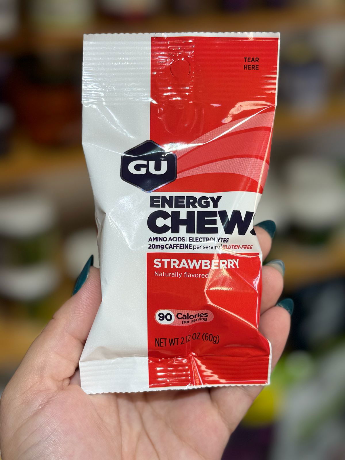Los GU Energy Chews son suplementos nutricionales masticables, diseñados para suministrar energía y nutrientes clave como electrolitos y aminoácidos para que te sientas fuerte y lleno de energía. Los deliciosos sabores te van a ayudar a cumplir con tu plan de nutrición, para que puedas obtener los mejores resultados. Los Energy Chews tienen nutrientes similares por porción a los GU Energy Gels originales, entregando la energía que necesitas en forma masticable y del tamaño de un bocado para facilitar la ingesta a quienes no se sienten cómodos con los Geles, o necesitan variar de tanto en tanto.Esto es lo que contienen: