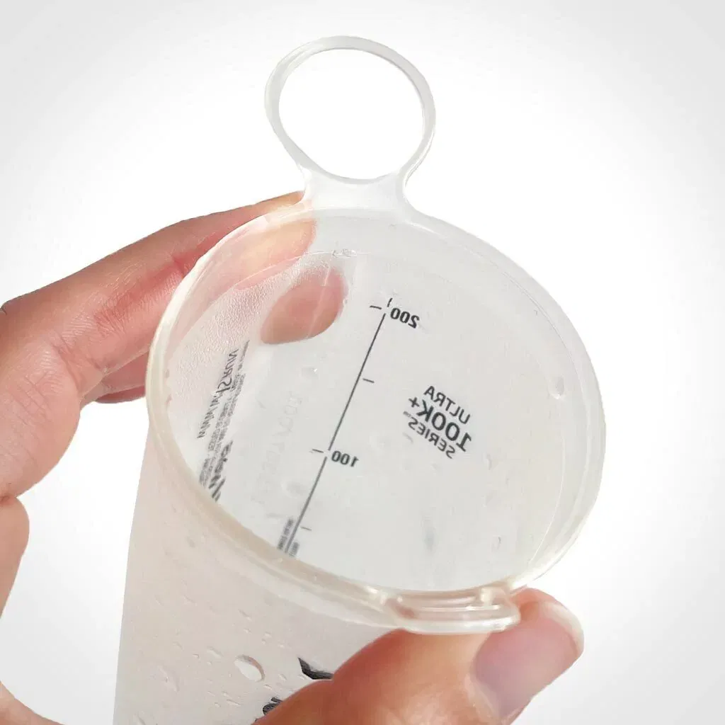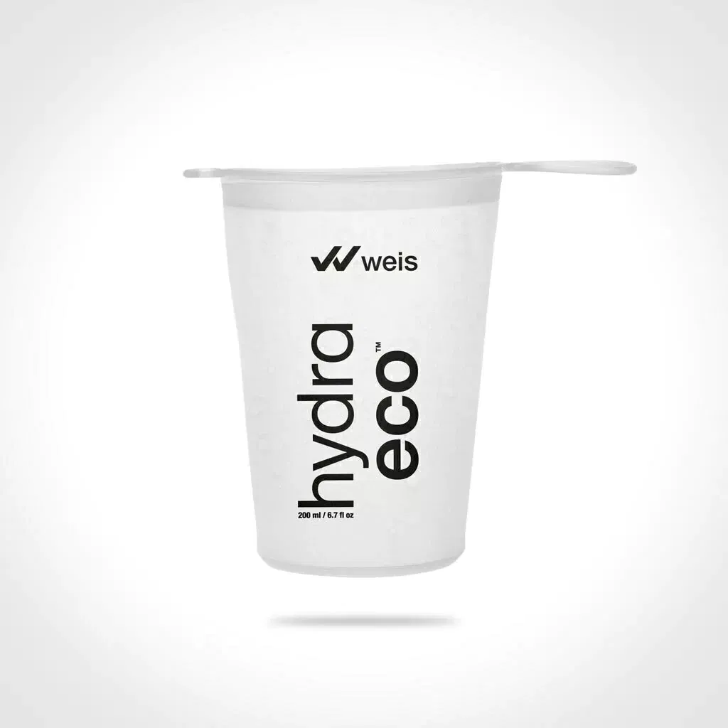 Cómodo, pero ultra resistente, elástico, seguro y fiable, el VASO HYDRAECO plegable es liviano y reutilizable, con una capacidad total de 200 ml. Gracias a su base plana cuenta con indicador de volumen para simplificar el armado de bebidas isotónicas o aminoácidos, en caso de requerir. Su borde rígido y una presilla ergonómica para el pulgar ofrecen mayor estabilidad para llenarlo fácilmente y beber sin salpicaduras mientras se corre, o sin quemarse con líquidos calientes como sopa en algún punto de avituallamiento.