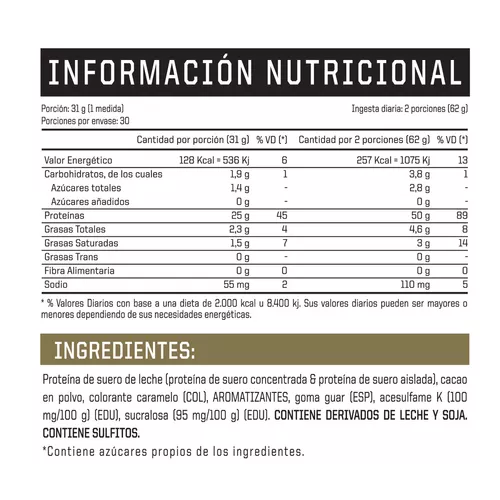 - Whey Protein Isolate (WPI): máxima pureza. Bajo en carbohidratos, grasas y fácil de digerir logrando una mayor absorción de la proteína.