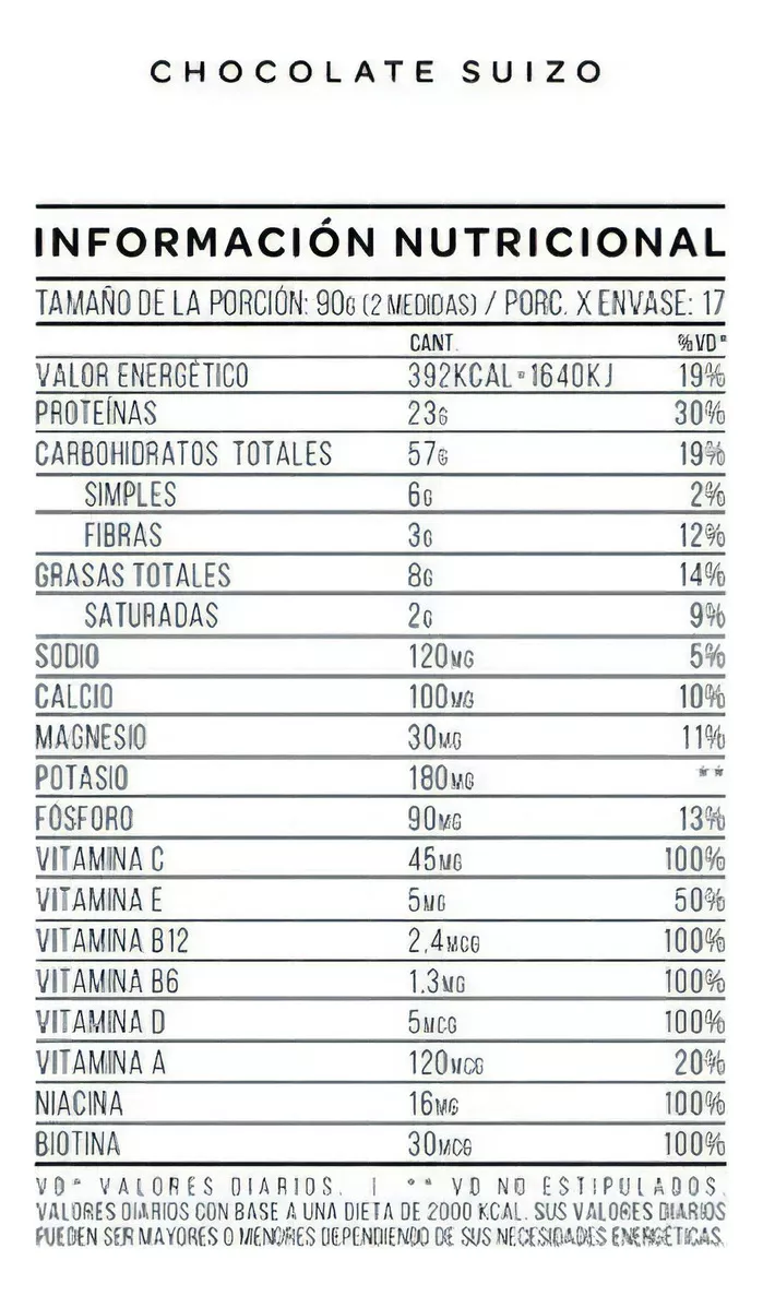 *Los sabores chocolate suizo y cookies and cream tienen cacao.