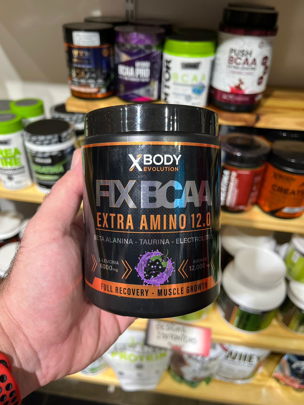La L-leucina, L-valina y L-isoleucina son aminoácidos de cadena ramificada (BCAA). Estos son esenciales, es decir que el organismo no puede producirlos y deben obtenerse a través de la ingesta de alimentos o de suplementación. Promueven la síntesis de proteínas que serán convertidas en masa magra y mejoran la aptitud física. FIX BCAA puede ser consumido antes del entrenamiento permitiendo proteger los músculos y evitando la fatiga. Contiene además beta alanina, que mejora el rendimiento al aumentar la potencia y, junto con la taurina, ayudan a retrasar la fatiga. La taurina juega un papel vital en el metabolismo energético, actúa en la reparación de tejidos y así se evitan lesiones. Contiene también Vitamina B6, que ayuda a mantener saludable el sistema nervioso, producir hemoglobina y transportar oxígeno a todo el cuerpo. Esto también ayuda a reducir la fatiga, aumentando la resistencia del músculo. Finalmente, el agregado de electrolitos como el sodio y el potasio, permiten una mejor recuperación de los minerales que se pierden en la sudoración durante los ejercicios de alta intensidad.