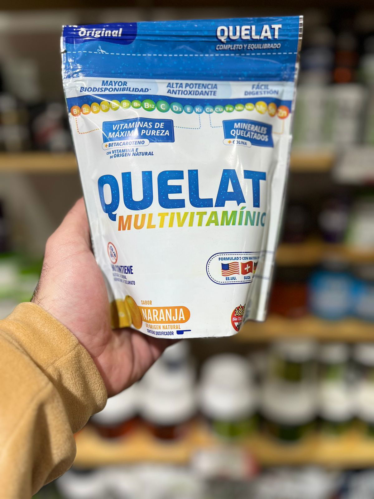 Quelat Multivitamínico es un desarrollo innovador de excelencia, que combina minerales quelatados (orgánicos) con vitaminas de alta pureza, obteniendo máxima biodisponibilidad de los nutrientes incorporados.