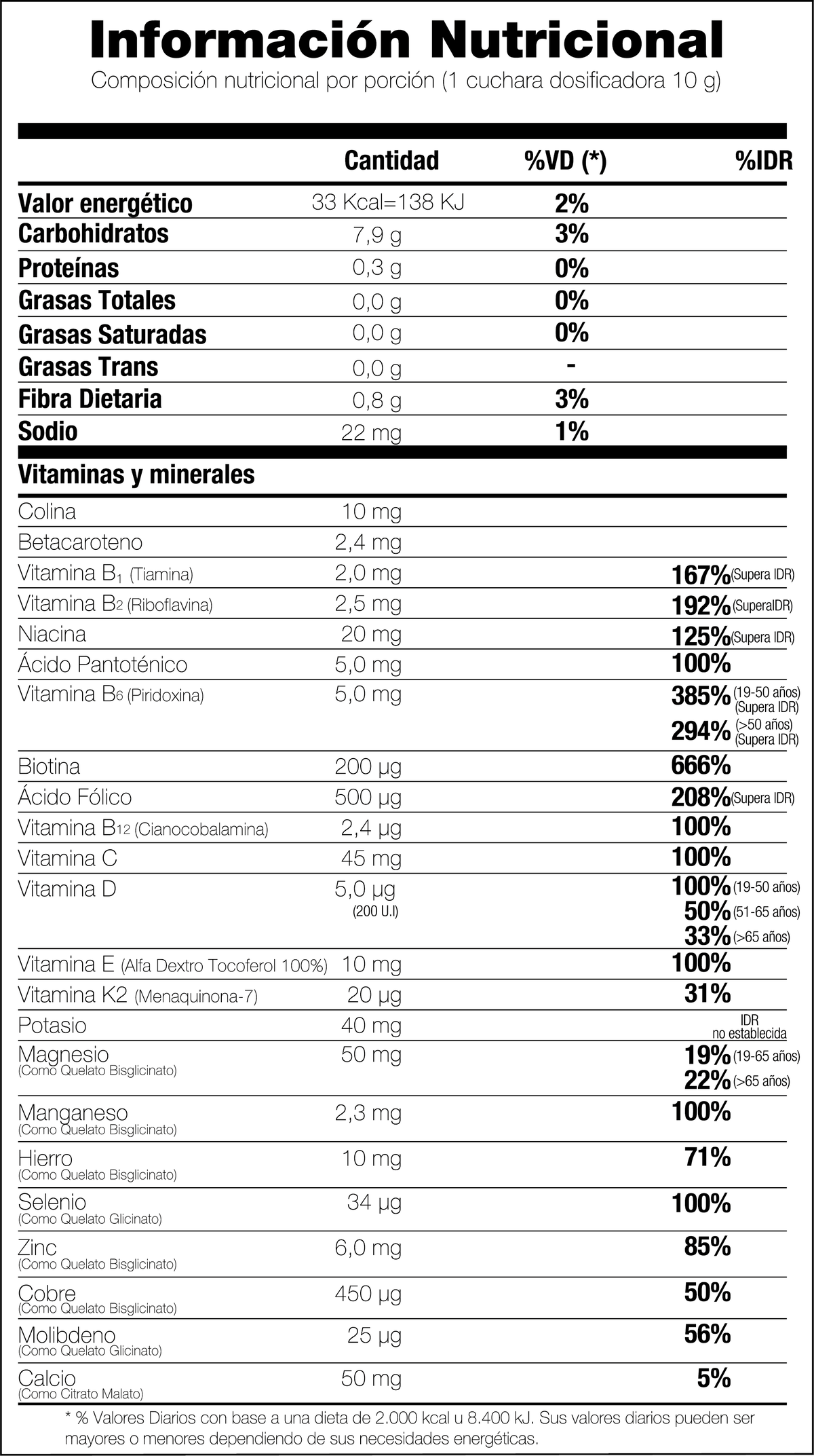 Dosis diaria recomendada: 1 cucharada por día (10g).