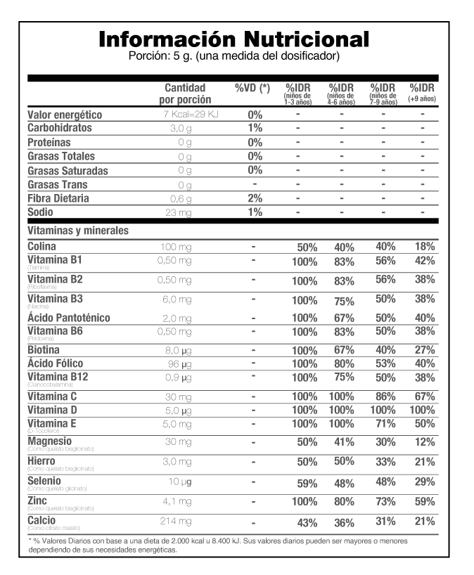 Dosis diaria recomendada: 1 cucharada por día (5g).